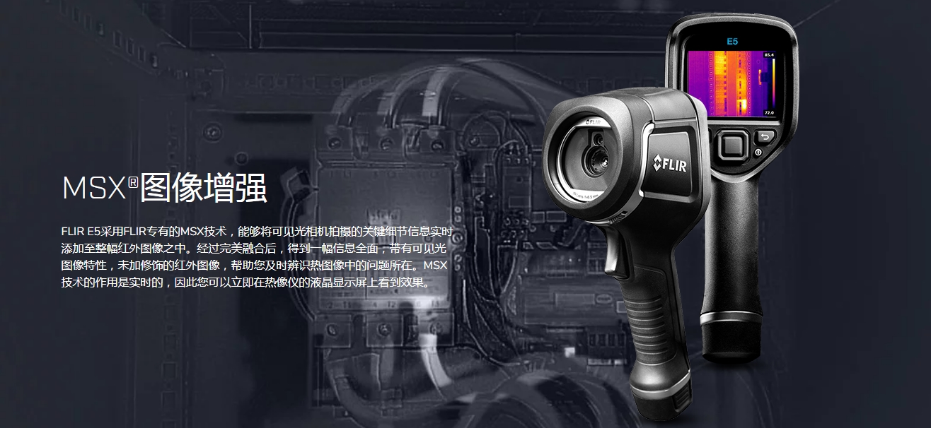 FLIR E8采用FLIR專有的MSX技術(shù),能夠?qū)⒖梢姽庀鄼C拍攝的關(guān)鍵細節(jié)信息實時添加至整幅紅外圖像之中。經(jīng)過融合后,得到一幅信息圖,帶有可見光圖像特性,未加修飾的紅外圖像,幫助您及時辨識熱圖像中的問題所在。MSX技術(shù)的作用是實時的,因此您可以立即在熱像儀的液晶顯示屏上看到效果。