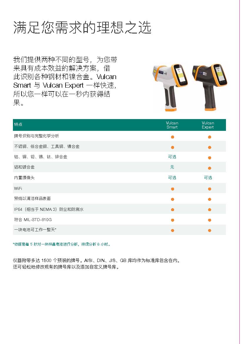 Vulcan 是一款耐用且分析速度極快的合金分析儀。扣扳機(jī)后一秒即會(huì)顯示結(jié)果。且產(chǎn)品使用激光誘導(dǎo)擊穿光譜技術(shù) (LIBS),您無需擔(dān)心X射線的影響。無論您的業(yè)務(wù)是廢料分選還是 PMI 質(zhì)量控制,Vulcan 始終提供準(zhǔn)確且一致的合金 牌號(hào)。